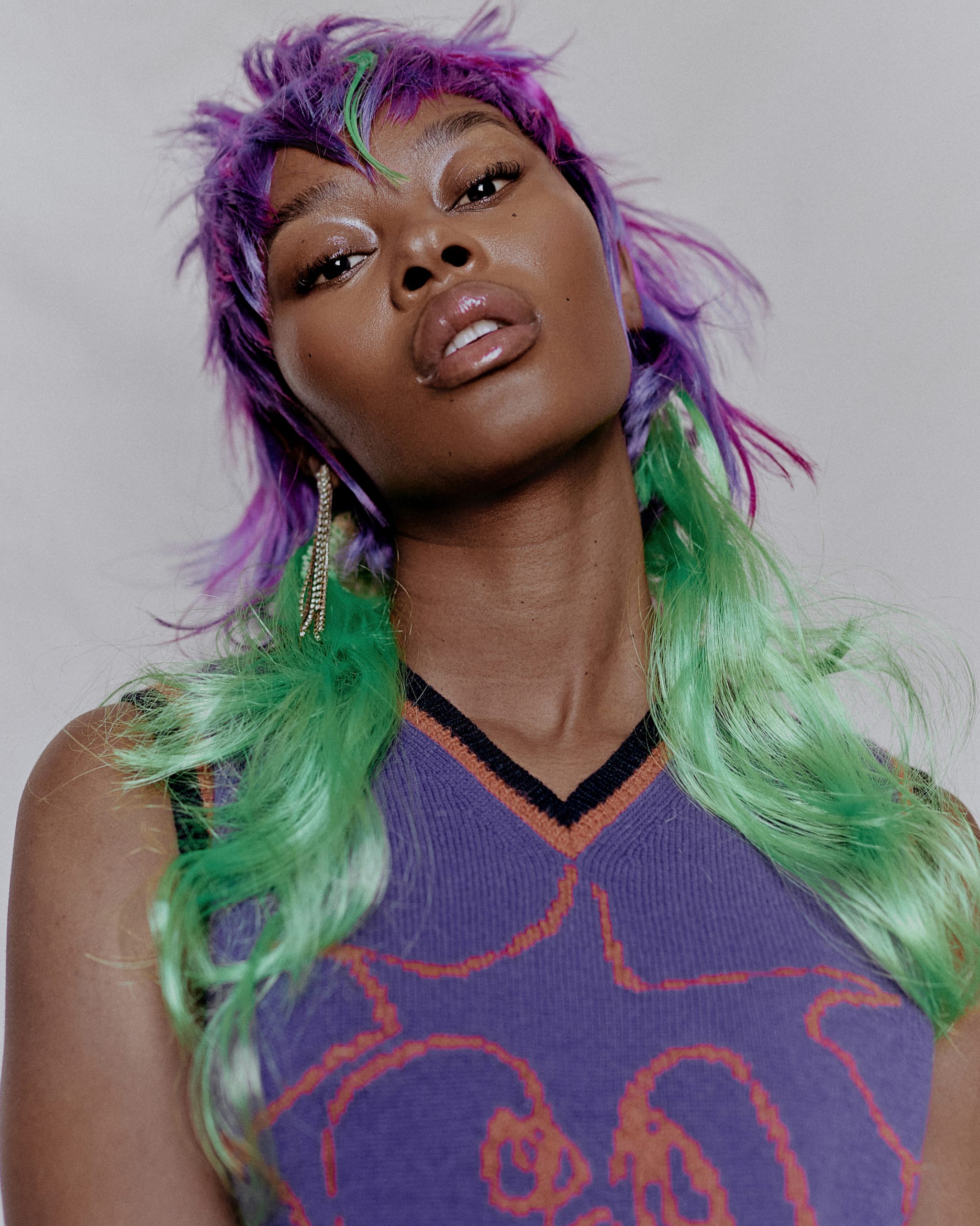 Left: Alex wears jacket Jacquemus at Net-a-Porter. Right: Lindiwe wears vest Heaven by Marc Jacobs