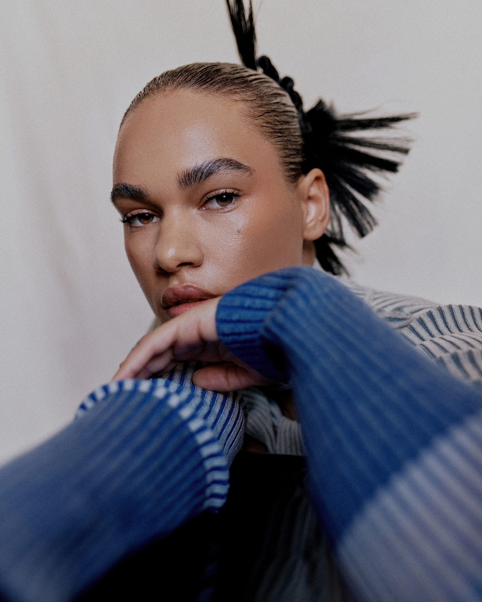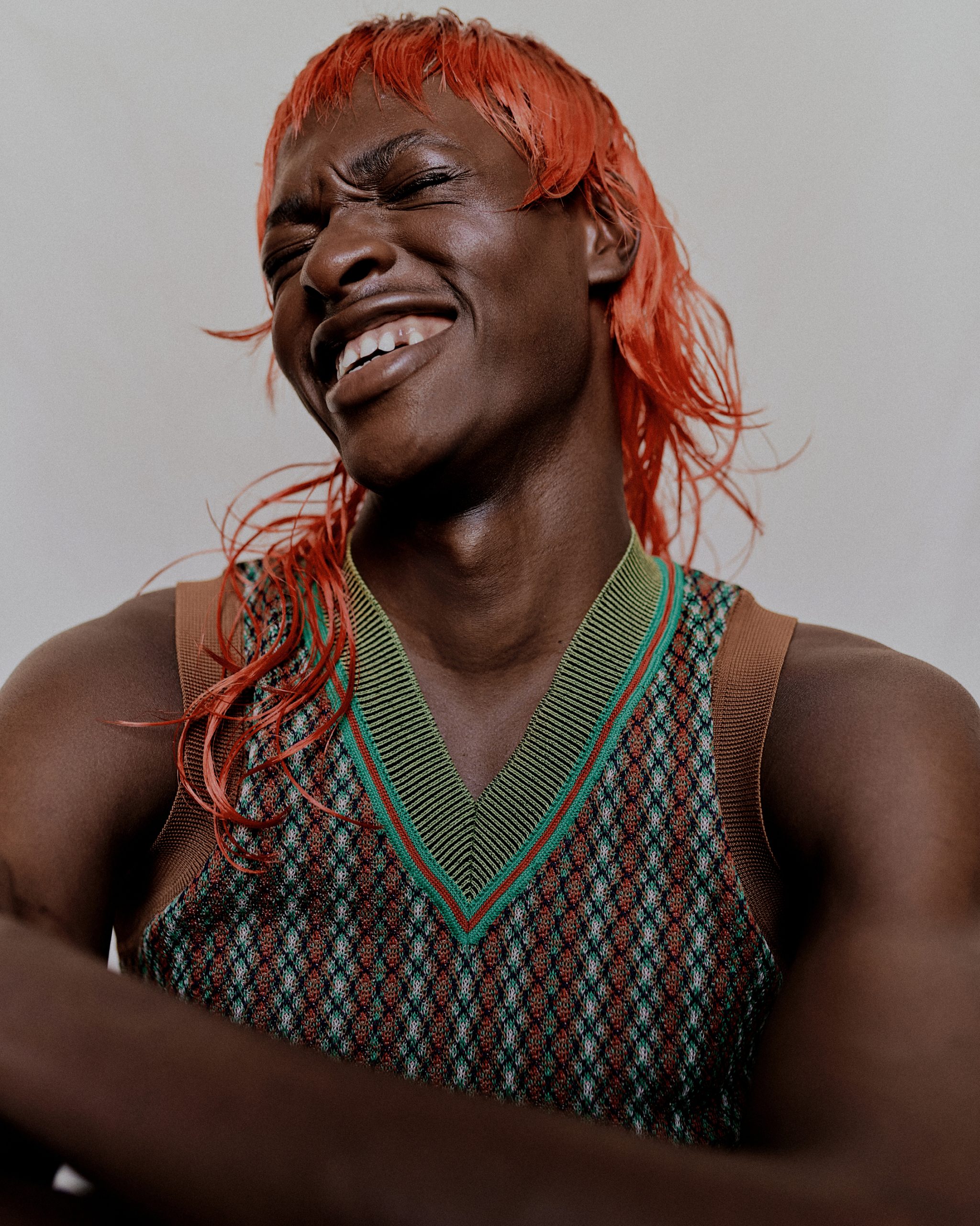 uKhanyo wears top Helmut Lang at Net-a-Porter. Blazer, Fear of God