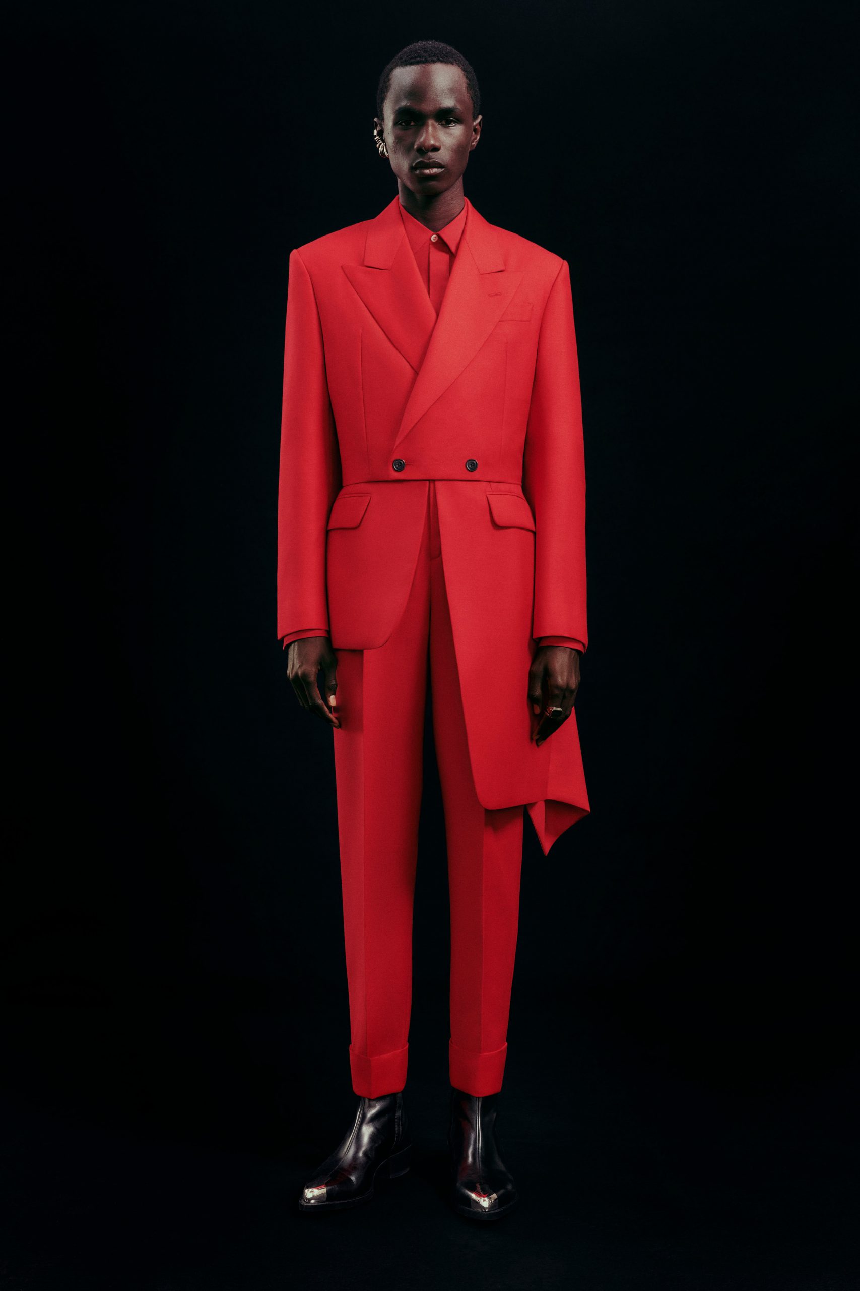 Alexander McQueen’s Autumn Winter 2022 Menswear looks were conceived at the same time as the pre-fall collection, but the house decided to hold back media from the collection.