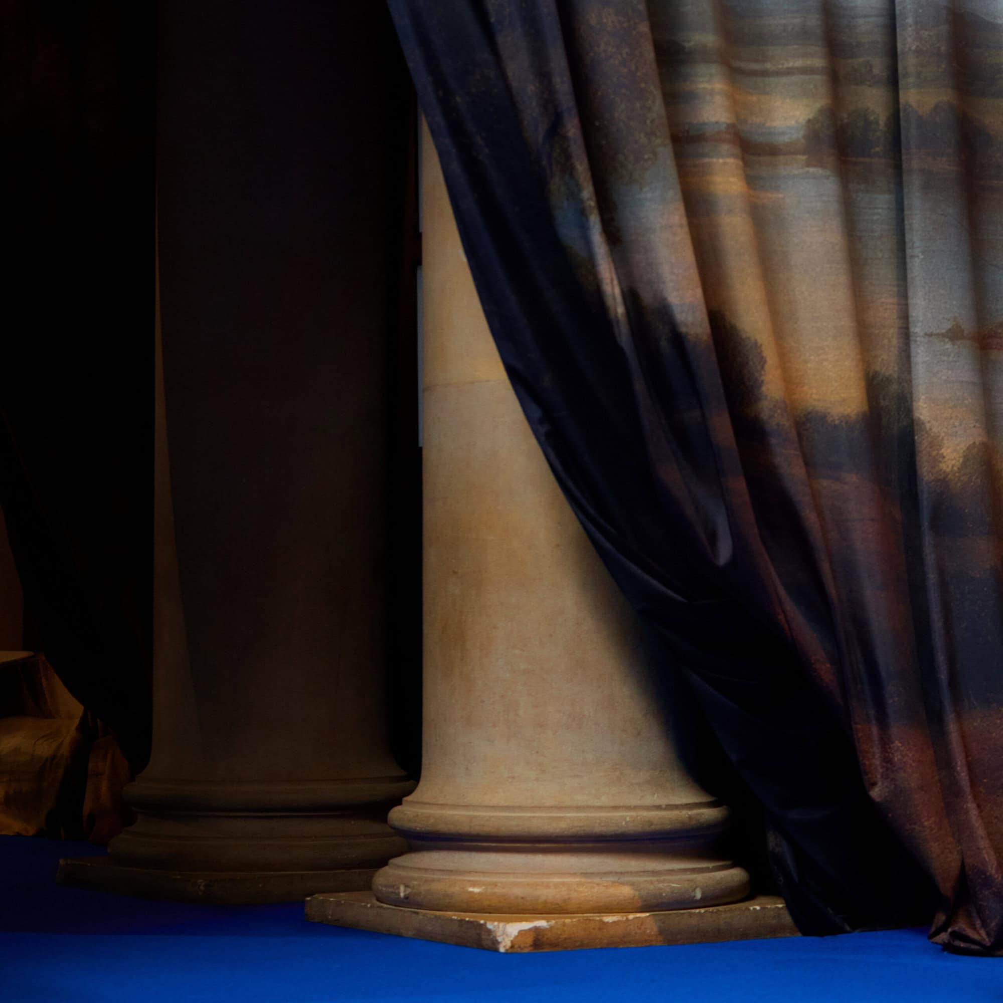 The clothing, though, was anything but crumbling. Lee reinterpreted traditional silhouettes in a very modernist vein: streamlined, body-skimming leather trench coats with elevated lapels, rich velvet brocade jackets, and reimagined jodhpur pants with smooth range of motion. Ankle-high leather boots, a reference to outrageous riding gear, anchored the outfits in the earthy, horseback roots of Burberry while also making the case for functionality and panache. Trench coats came torn in chine damask and check patchwork shearling, while jacquard-woven pieces emulated the tapestries of old estates. Silk pyjama blouses poked out from under cashmere coats, confirming the collection’s contrast between home and world.