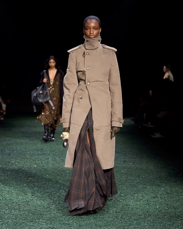 Coats take centre stage, symbolizing protection against the elements. From the iconic Burberry (Instagram) trench reimagined in moleskin, wool, and leather to wool and cashmere coats boasting a relaxed, double-breasted silhouette, each piece exudes warmth and style.