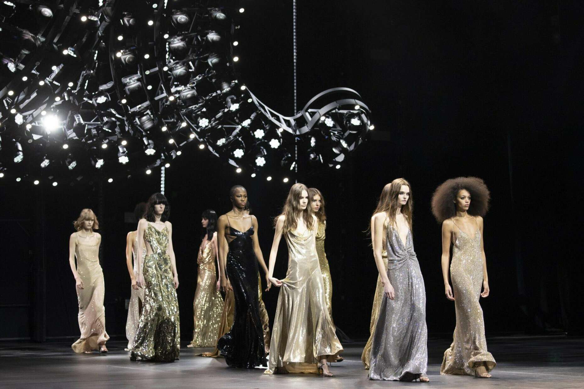 The “Age of Indieness” unfurled in a symphony of sights and sounds, showcasing Hedi Slimane’s boundless creativity and multifaceted talents. Slimane assumed multiple roles, from casting the models and crafting their impeccable styling to designing the show’s extraordinary set. The seamless fusion of music and visual aesthetics was ingeniously orchestrated, with electrifying live performances from legendary musicians such as the iconic Iggy Pop, the enigmatic The Strokes, the magnetic Interpol, and an enthralling DJ set by The Kills.