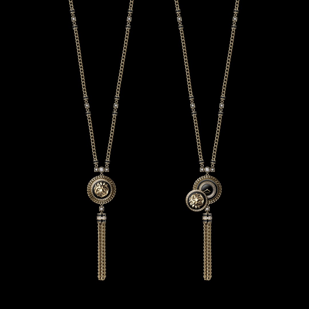 Presented as both a necklace and a ring, the pieces combine yellow gold, diamonds and onyx, with the lion’s head carved in relief. The emphasis is on craftsmanship, from the sculptural detailing to the precise stone-setting, creating objects that feel both symbolic and personal.