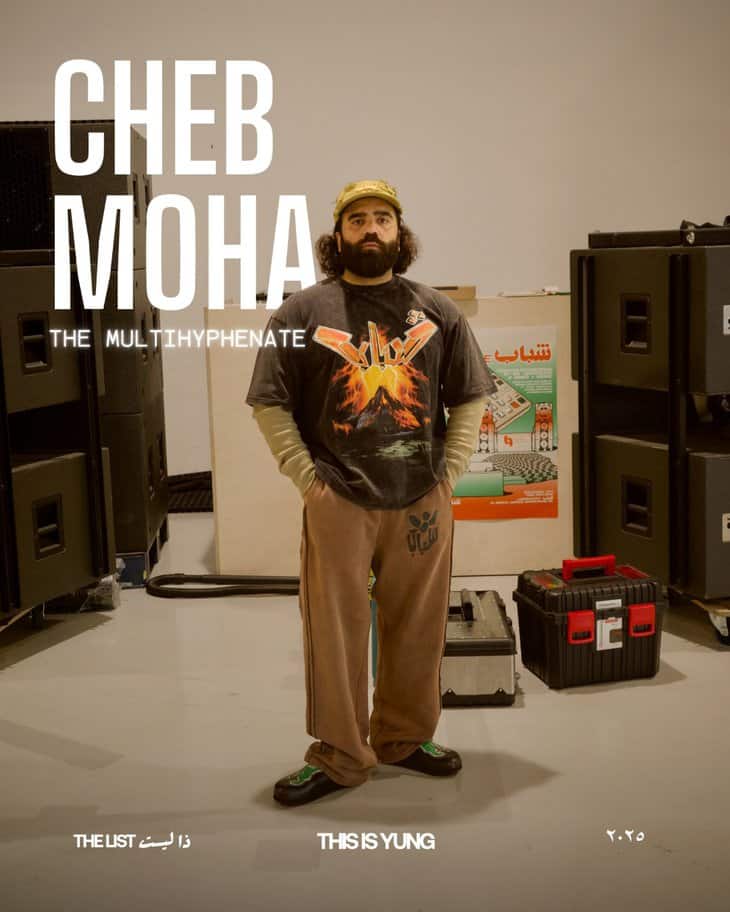 At the centre of Cheb Moha’s practice is Shabab, the platform he founded to explore contemporary Arab identity through lifestyle, design, and shared experiences. What began as a brand has grown into a living ecosystem, uniting collaborators, musicians, designers, and communities who help shape its evolving language.