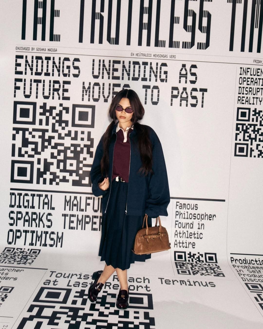 Once associated with high school outcasts or overachievers in ‘90s rom-coms, the “geek” archetype is being elevated by brands like Prada, Miu Miu, and Thom Browne. Miuccia Prada in particular has gone all-in on the aesthetic with longer skirts, cardigans that look borrowed from your grandma (in the best way), and intellectual eyewear that suggests you actually read.