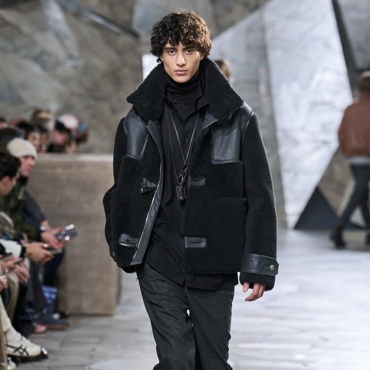 Models showed off ankle boots and derbies crafted from calfskin with a notched sole, while sneakers were rendered through a technical knit and suede goatskin. For evening shoes, Nichanian introduced calfskin derbies that featured a notched sole, as well as detailing in the ever-present palladium.