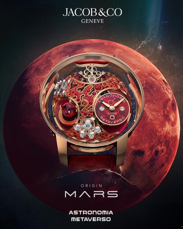 Through an exclusive partnership with UNXD, Jacob & Co. will create its debur NFT watch collection. The Astronomia Metaverso, as the collection is called, will build on the Jacob & Co.’s storied Astronomia line, while at the same time extending it into a crypto-native, digital future. The collection will also include five one-of-a-kind physical watches.