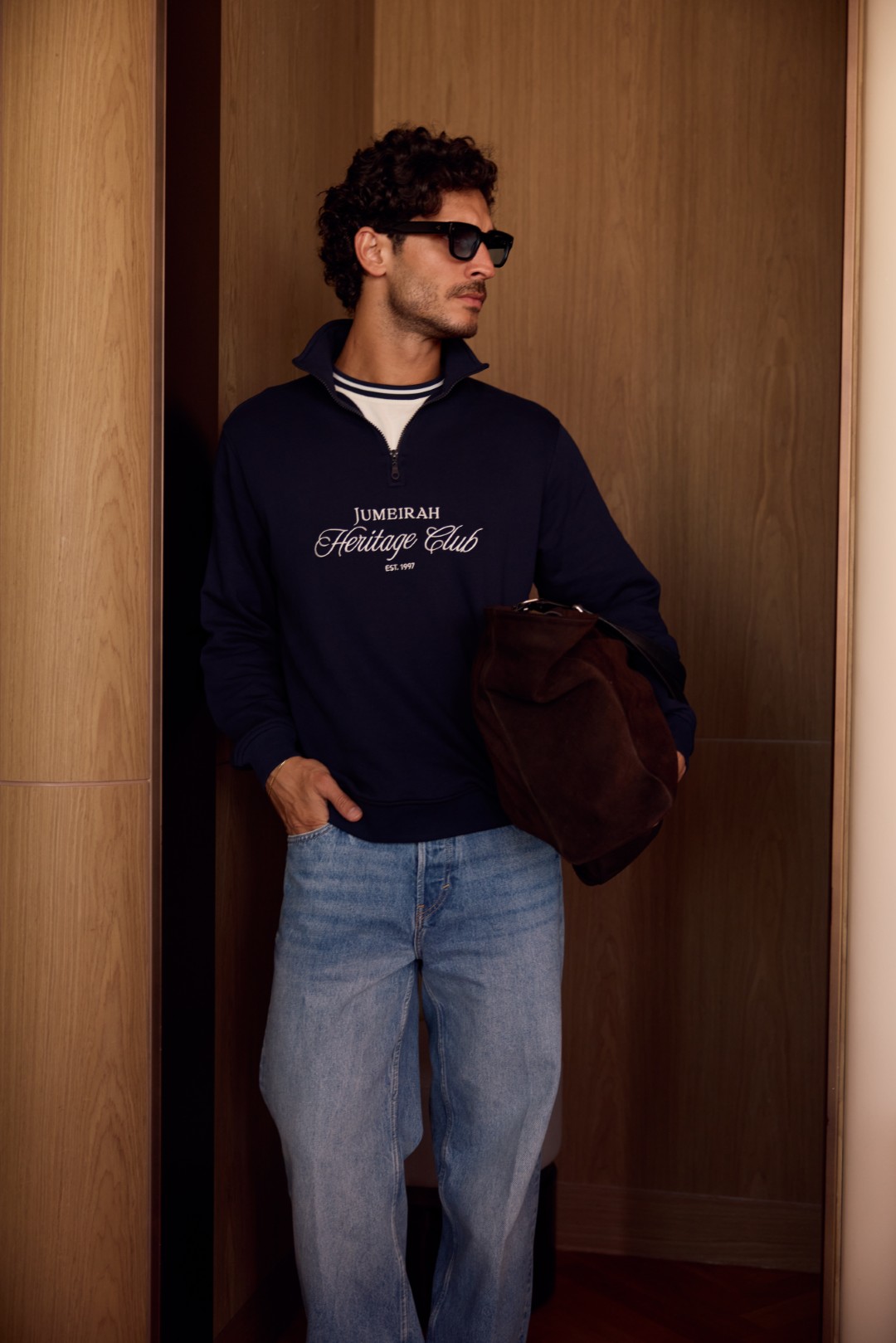 Bouguessa’s influence is unmistakable. Known for refined tailoring and clean architectural lines, the Maison approaches minimalism not as restraint but as intention. Here, that sensibility shapes an edit of unisex essentials: jumpers, T-shirts and caps designed to feel effortless yet composed. The palette is softened, the silhouettes assured. A minimalist logo ties the pieces together, with select items featuring an image of the Burj Al Arab, a symbol of the city and a marker of Jumeirah’s global legacy.