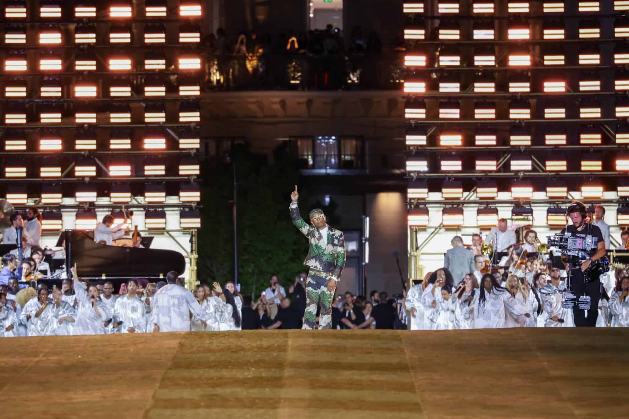 At the end of the show, Williams himself appeared, clad in a pixelated Damoflage suit, matching hat and sparkling sunglasses. Not one to hog the limelight, Williams brought out his entire team, where they basked in the figurative sunlight. Voices of Fire, sang “JOY” as he took in the acclaim, singing “If you want it, you can have it. If you need it, you can have it”. Pharrell Williams, a multi-hyphenate, indeed.