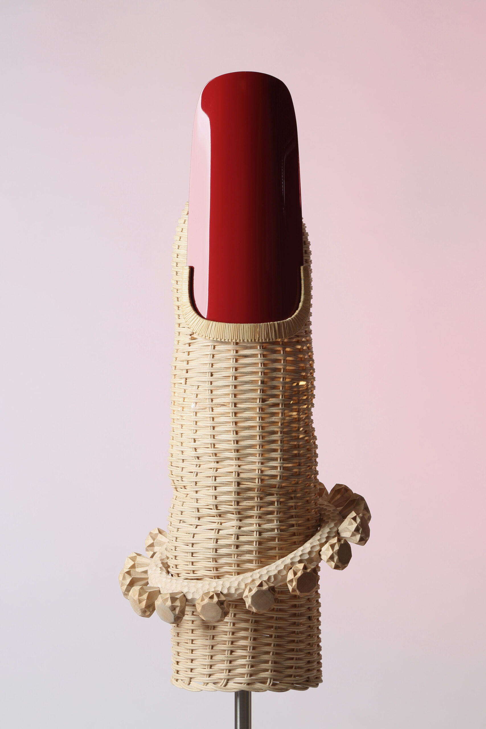 At 5VIE, Lebanese designer Richard Yasmine presented a collection of sculptural lighting pieces built around fragments of the body. The project translated sensory elements into objects through a combination of wood marquetry, leather, embroidery, glass, metal, and rattan, each piece functioning as a light source.