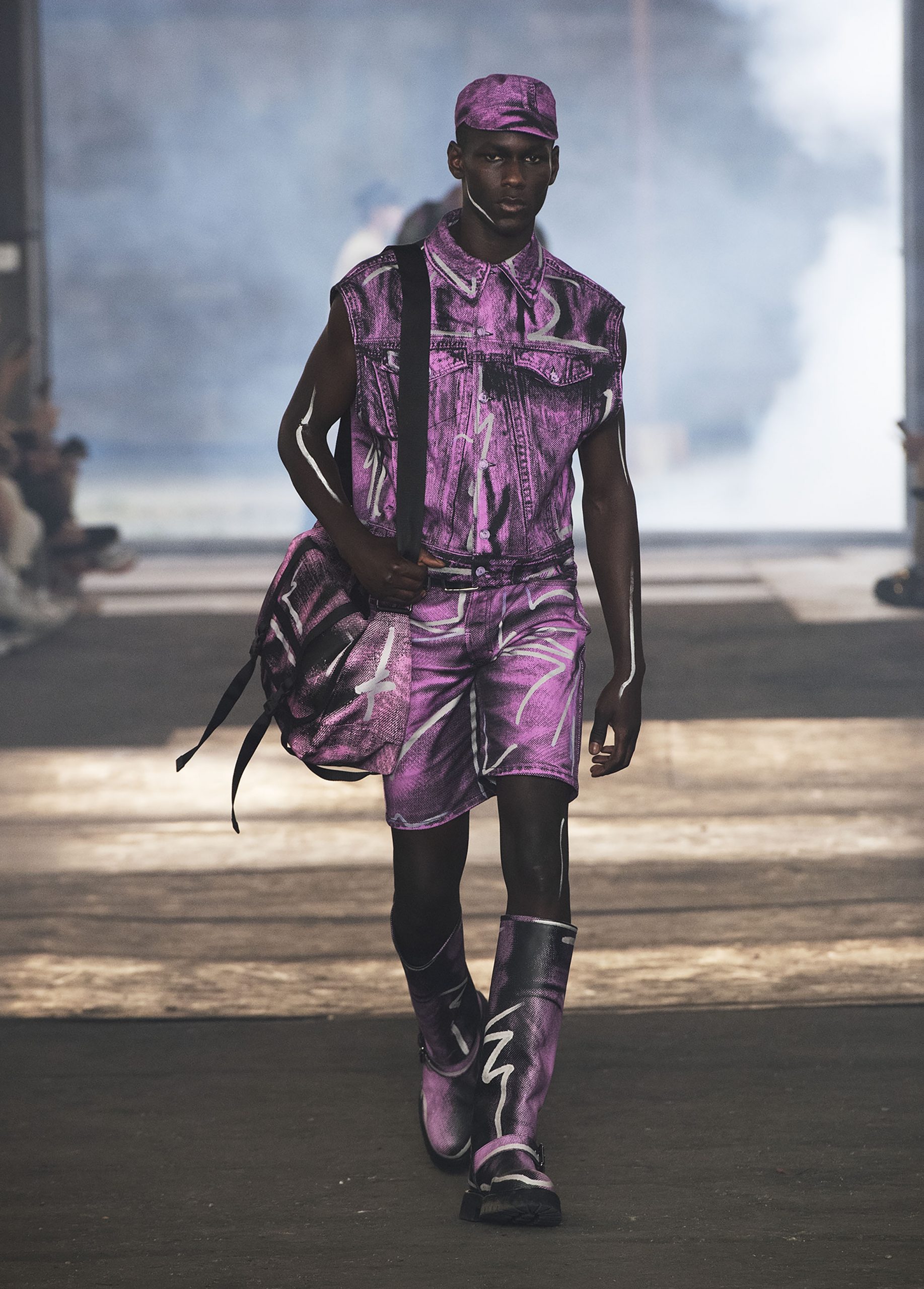 Since his appointment at Moschino, Jeremy Scott’s codes have become indistinguishable from the house of Moschino, and it is no more evident than the house’s menswear collections. For Spring-Summer 2023, Scott paid homage to the artist’s iconic oeuvre and iconoclast approach.