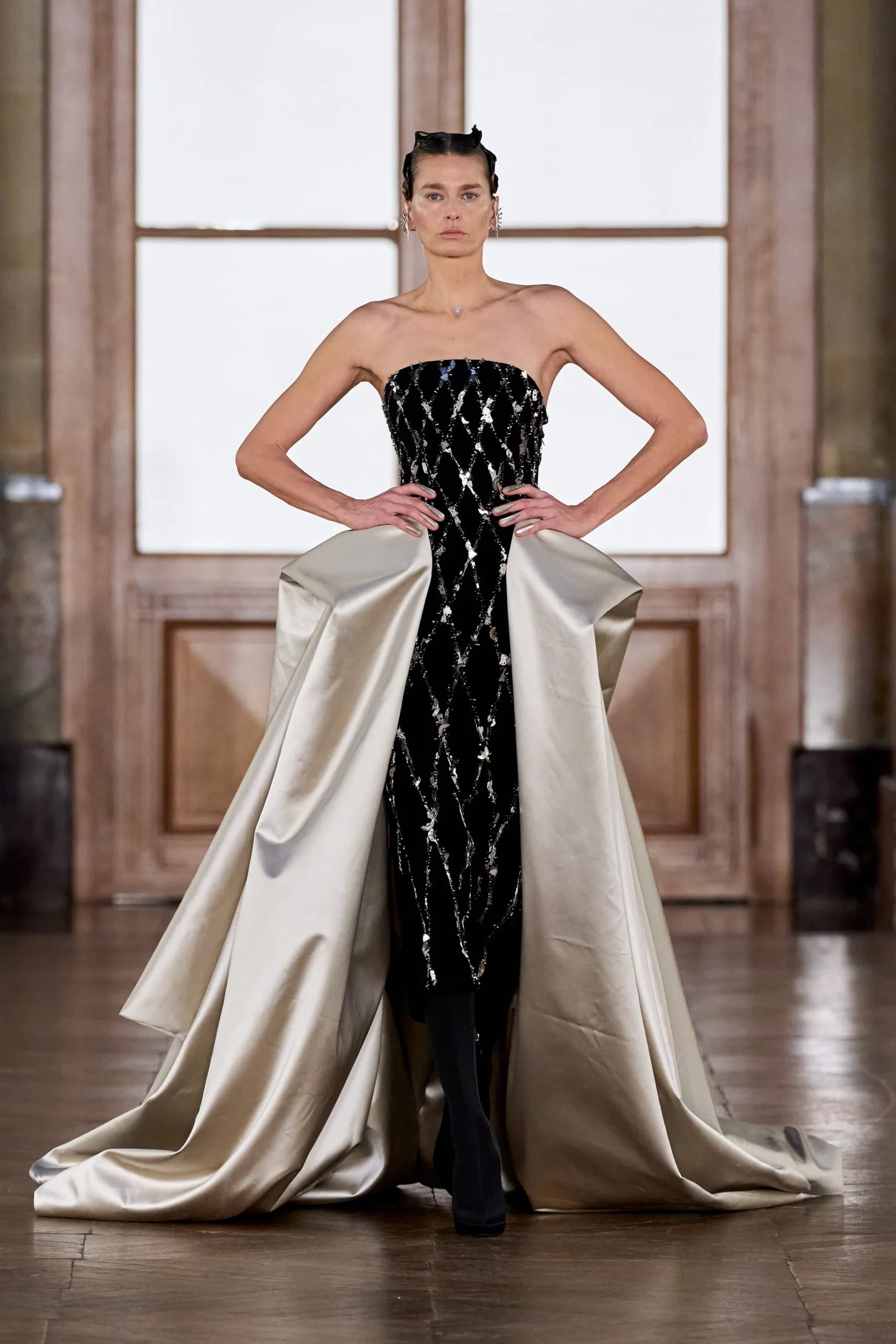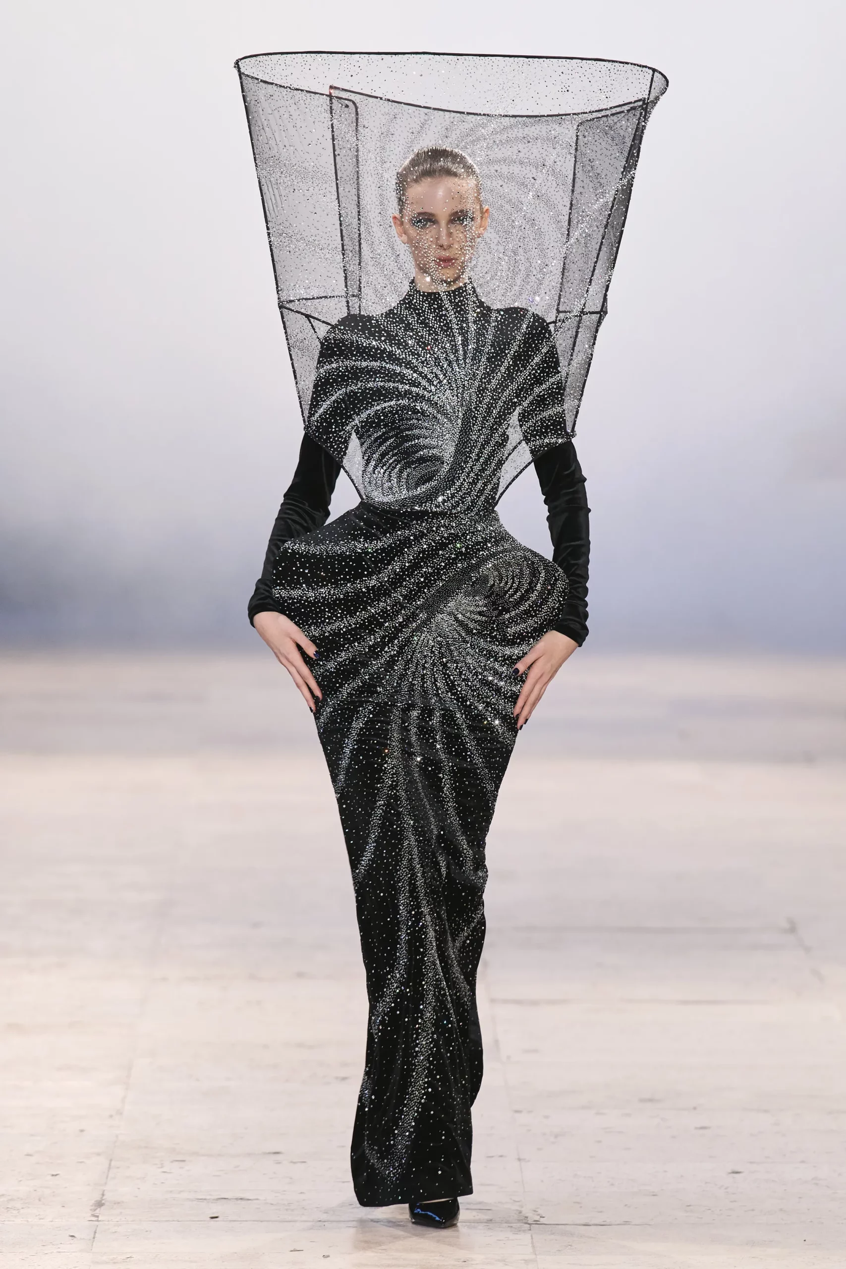 Robert Wun’s Spring 2026 couture was described as otherworldly and elemental, with designs that referenced natural forces and cinematic spectacle. His runway created a sense of fashion as performance, with surface treatments and silhouettes that seemed to echo atmospheric phenomena like storms or winds. The collection balanced couture’s traditional handcraft with a futuristic, almost sci-fi sensibility, positioning garments as armour and art simultaneously. Wun’s presentation stood out for its visceral energy and immersion, transforming couture into a broader emotional experience rather than just a showcase of technique. This sort of narrative-driven couture is helping define the new generation of independent voices in the Paris calendar.
