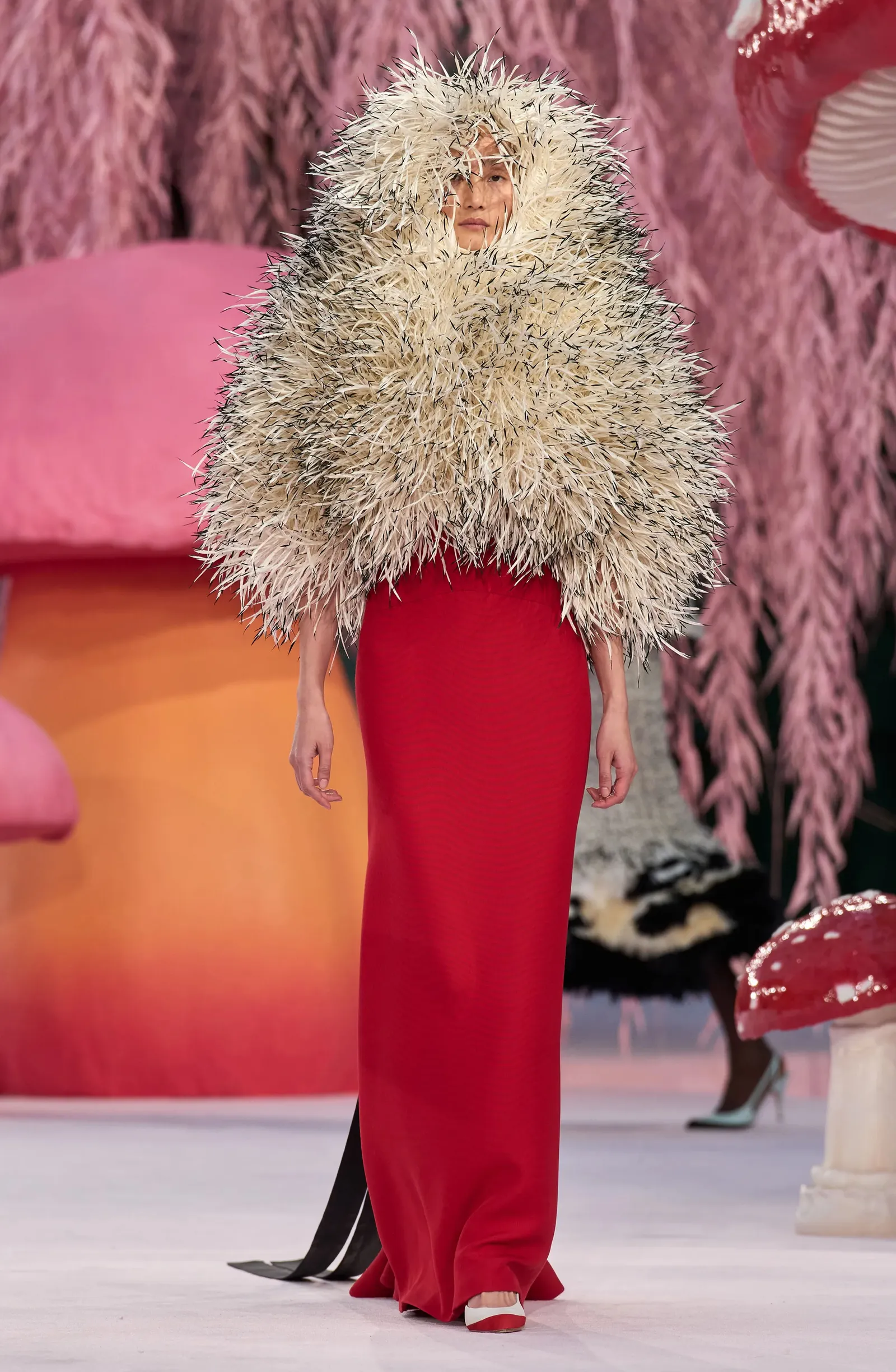 Viktor & Rolf continued their reputation for avant-garde, concept-driven couture, presenting pieces that felt as much like art installations as they did garments. Known for questioning what fashion can be, the Dutch duo often uses deliberate theatricality and surreal elements to challenge norms, a thread that remained visible at this Couture Week. Their work occupies a space between fashion and performance, sometimes trading immediate wearability for visual and intellectual impact. Whether through unexpected textures, playful proportions, or disruptive silhouettes, Viktor & Rolf’s collection presented designs that demand active interpretation. It’s the kind of show that keeps couture at the edge of its own possibility.