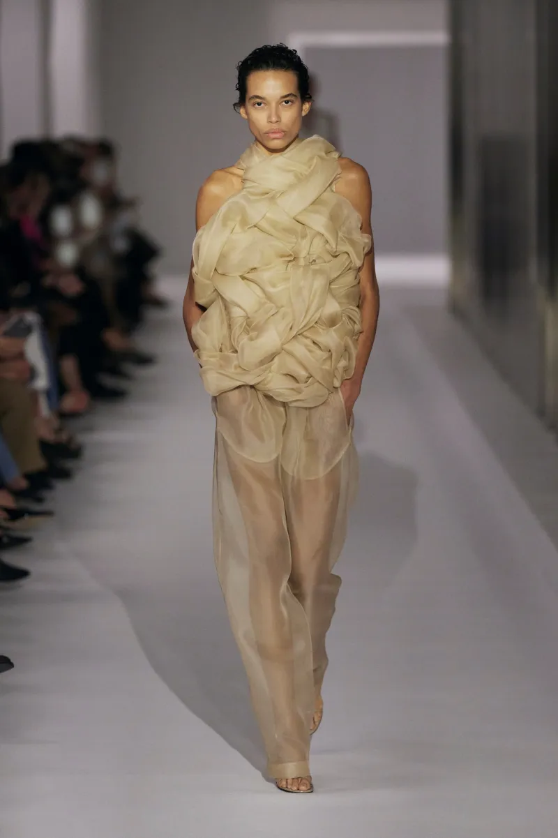 Veronica Leoni’s debut at Calvin Klein (Instagram) was a celebration of New York—not the real city, but the one that exists in collective imagination. Her collection revived the house’s signature ’90s minimalism with a sharp, modern edge, balancing corporate polish with insouciant sex appeal. Rounded-shoulder suits, ethereal white blazer dresses, and sculptural eveningwear redefined “clothes for life, 24/7.” As Calvin Klein’s first female creative director, Leoni took on the challenge with confidence, blending archival nods with fresh perspective. The result? A sleek, sophisticated reawakening—one that even Klein himself approved of, coat in hand.