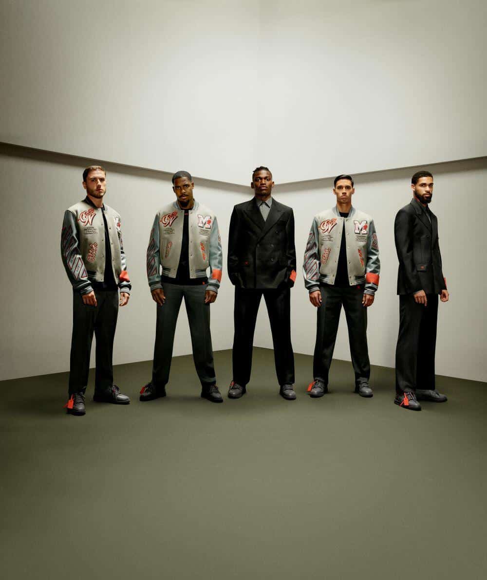 Off-White (Instagram) and AC Milan (Instagram) are kicking off their latest collab, unveiling their second-year collection with a dazzling series of uniforms that blurs the lines between football and high fashion.