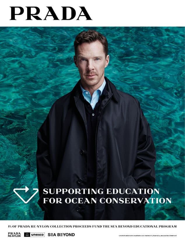 The 2024 campaign showcases timeless pieces from the Re-Nylon Collection, worn by Watson and Cumberbatch, against the backdrop of the ocean. A portion of proceeds from the collection supports SEA BEYOND, an educational program launched by Prada Group and UNESCO’s Intergovernmental Oceanographic Commission. SEA BEYOND aims to raise awareness and promote sustainability and ocean literacy among young generations worldwide.