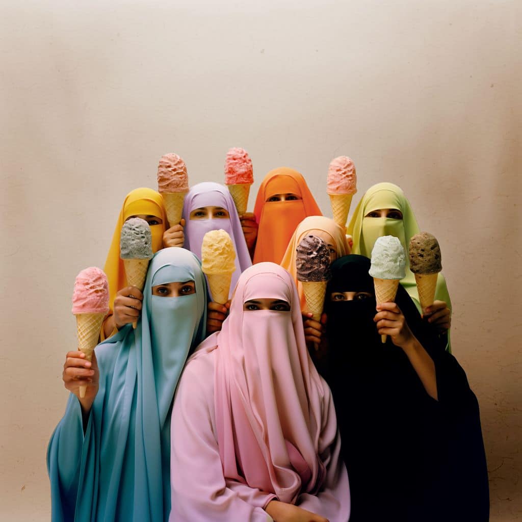 One piece that encapsulates what Al Malki is trying to do is “Gelato”, where a group of colourfully-dressed women are gleefully clutching equally multicoloured gelatos. It’s fun, there’s a clear sense of joy, of friendship, of freedom. It’s a simple image, but it evokes so many emotions and questions, all of which are light-hearted. It’s local, it’s set in a stunning environment and it’s clearly contemporary.