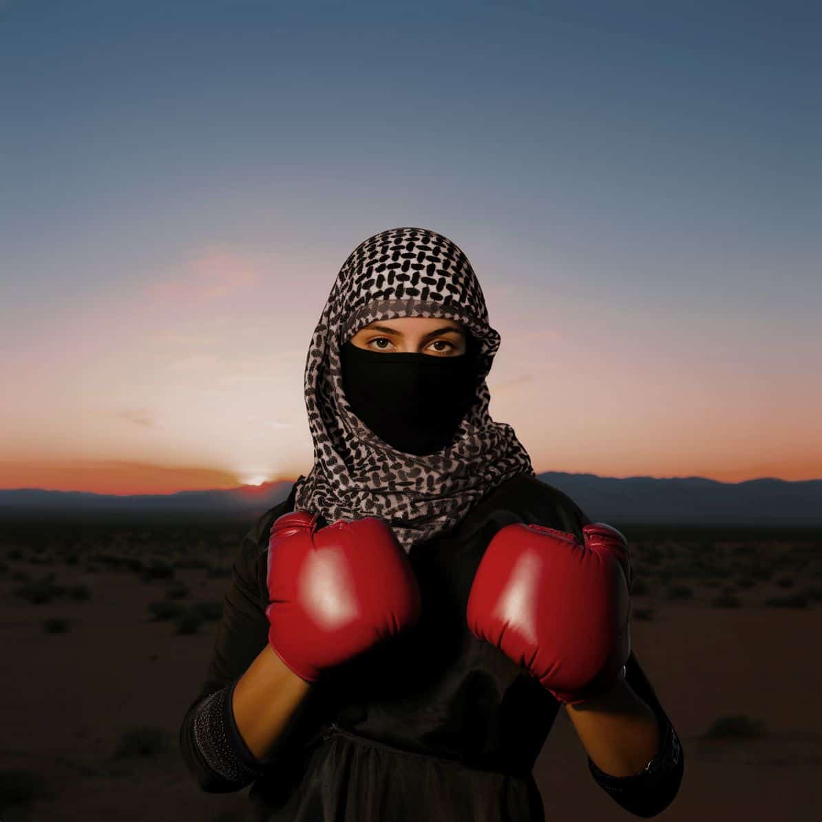 Ethical questions and the search for clarity aside, Al Malki is working with a certain fresh, pop art appeal, crafting images that, to many outside our region, might seem entirely at odds with the long-established, Western dominated, narrative. Girls ride motorbikes, old men volley footballs, mums and daughters race in trolleys through supermarkets, white beards rock out on electric guitars, a group of women in colourful dress tour the desert in the back of a pickup. It’s all refreshingly normal and it’s all presented in a contemporary, clean style. Al Malki says that his goal is to tell a compelling story with each image and your imagination certainly runs free when you see some of his pictures. Who is the old man with the guitar, what’s he playing? The piece is titled “Living on a Prayer” in a funny play on religious conviction and a potential love of Bon Jovi’s masterpiece. Art is often incredibly serious, people speak of emotions an awful lot, well, amusement is an emotion, laughter is a response, and both are valid.