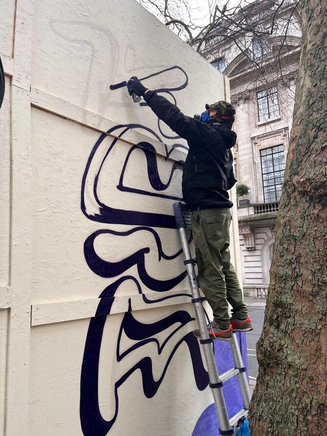 In the heart of Mayfair, a riot of colour has taken over an 80-foot stretch outside the Saudi Embassy (Instagram) as Saudi street art comes to London. The striking mural, a collaboration between Saudi street artist San Shyn (Instagram) and UK graffiti legend Cept (Instagram), pulses with the raw energy of street culture, bridging two worlds with a singular creative language. Commissioned by Saudi Ambassador Khalid Bin Bandar Al-Saud, the piece is part of a broader push to spotlight Saudi contemporary art on an international stage.