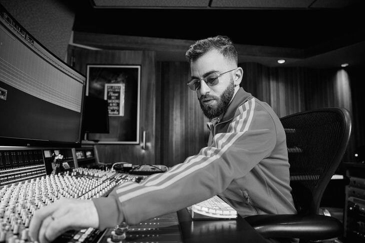 After a career built behind the boards, he’s beginning to take steps into the foreground—claiming his place not just as a producer, but as an artist in his own right. “It gave me anxiety,” he admits of his first official artist credit on a track with Nai Barghouti. “It’s the first time I’ve presented myself directly to the audience—not just through someone else.”