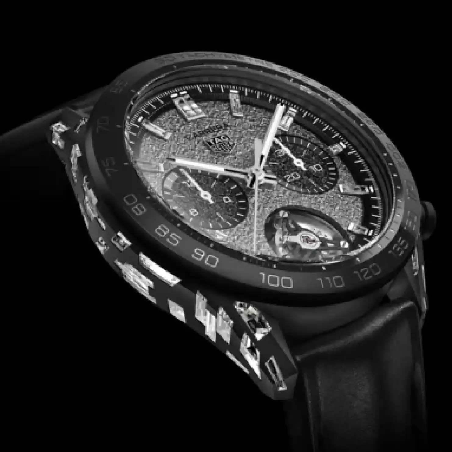 In March this year, TAG Heuer proved that it is possible to grow lab diamonds and use them to create pioneering watch designs. The watchmaker introduced the TAG Heuer Carrera Plasma Nanograph, a one-of-a-kind piece that features 11.7 carats of man-made diamonds. The watch comes in a 44 mm black anodized aluminium case and features a dial formed from a single plate of polycrystalline diamonds. The crown is made from a 2.5-carat lab-grown gem and the case is set with diamonds in elongated custom-cut shapes. The watch retails at $374,000.
