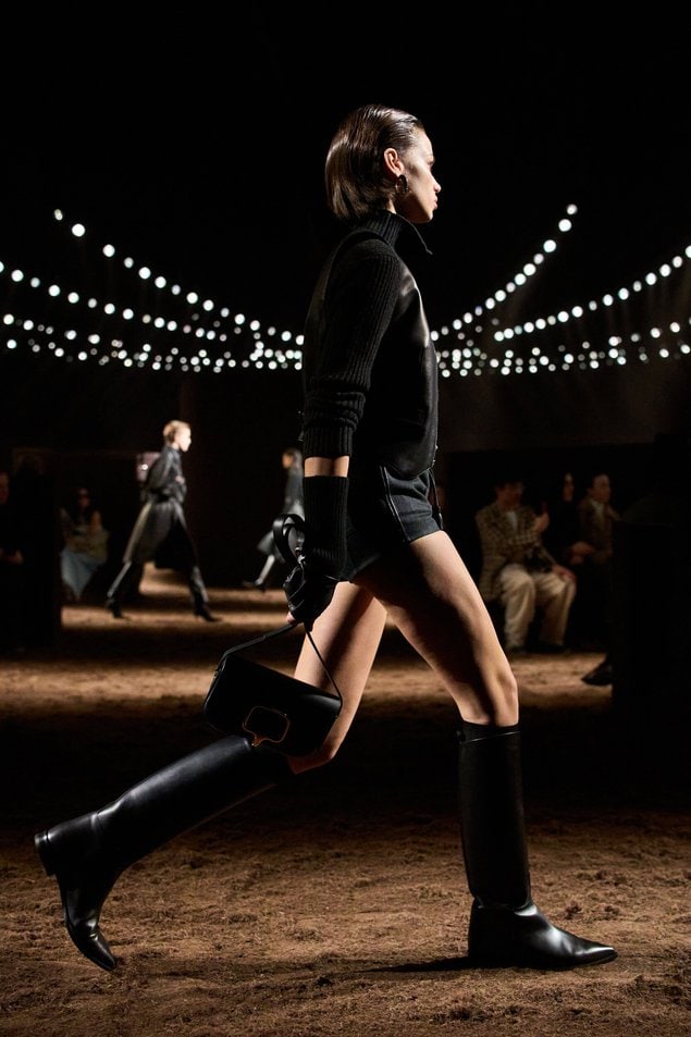On a dimly lit runway scattered with fine sand, Hermès (Instagram) presented a Fall 25 collection that shimmered like polished obsidian: sleek, contained, quietly erotic. Nadège Vanhée, a decade into her tenure at the house, offered a masterclass in restraint and seduction—her vision cutting across equestrian tradition, fetishistic undertones, and the anatomy of real-world desire. The result? A collection that felt like a whispered revolution.