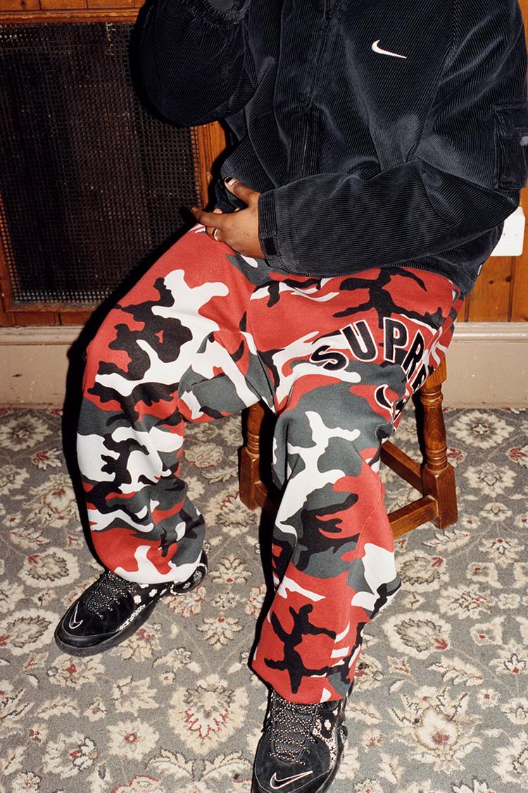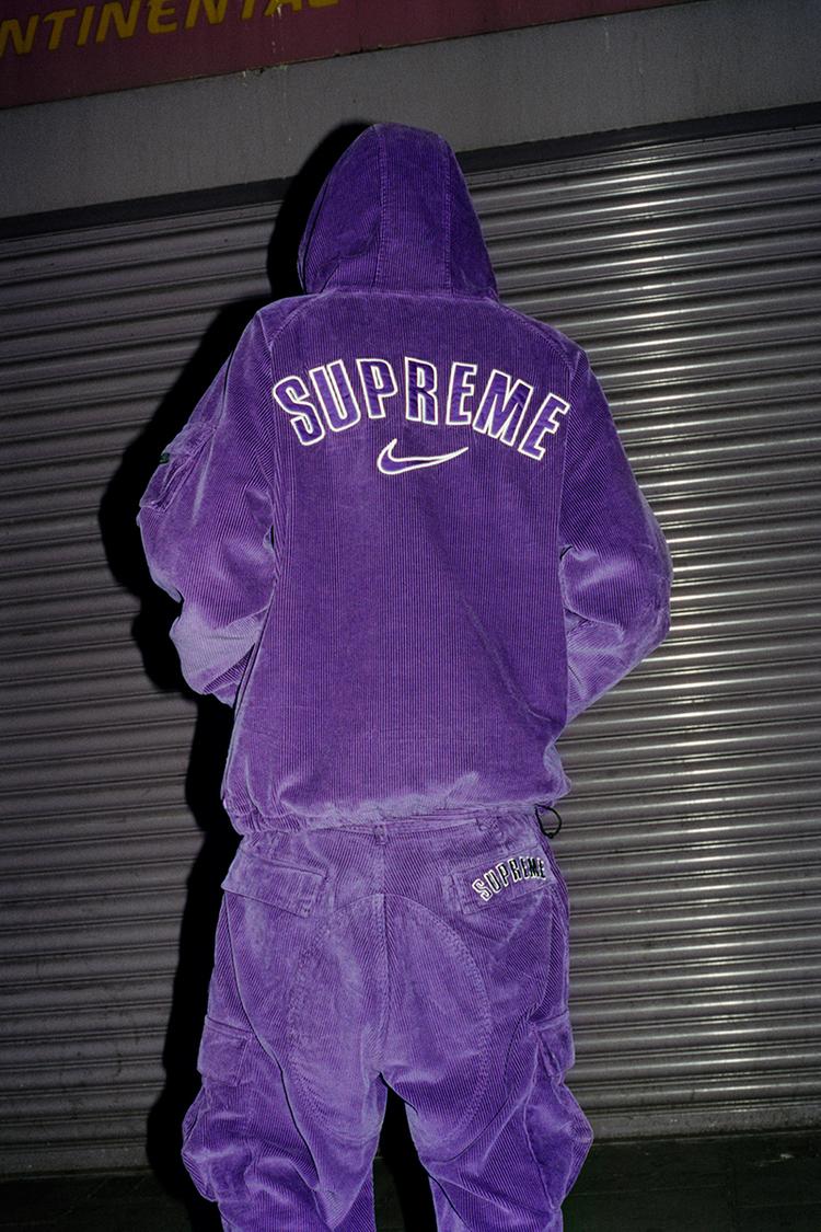 The collection is made up of simple staples in fleece and corduroy, building on the sporty look of their latest partner, with a distinct New York Street sensibility. Consisting of items produced exclusively for Supreme, the collection comprises 6-Panel hats, with matching jackets, crewnecks, cargo pants, and sweatpants, in a colour pallet that features purple, black, and red. The red pallet comes in camouflage makeup.
