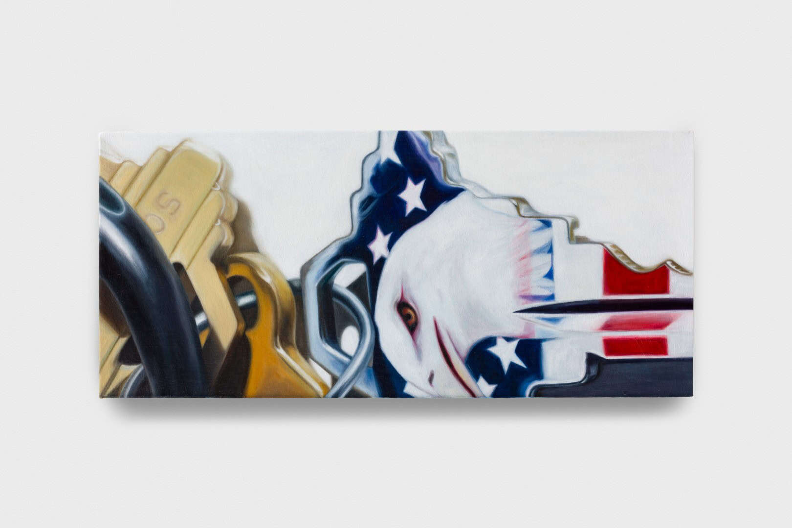 Internet culture informs the methodology of the work. How I compose a painting in terms of form, or choose a particular font, a colour, the cropping of the image – that shared lexicon that exists between art and internet informs how I relay the message to the audience. And in turn the audience can place itself into the modernity of how we come to understand images. It’s really about language and thinking how much technology has adapted with us as a society. That word “Technology” originated in a time where we used that to define the idea of craft and its methods’. So I think we’ve adapted to technology both in terms of society and linguistically and that impacts the readability and legibility of art, photos, and reality, to where we are very comfortable to identify a photo as a “meme” just off of its merits.