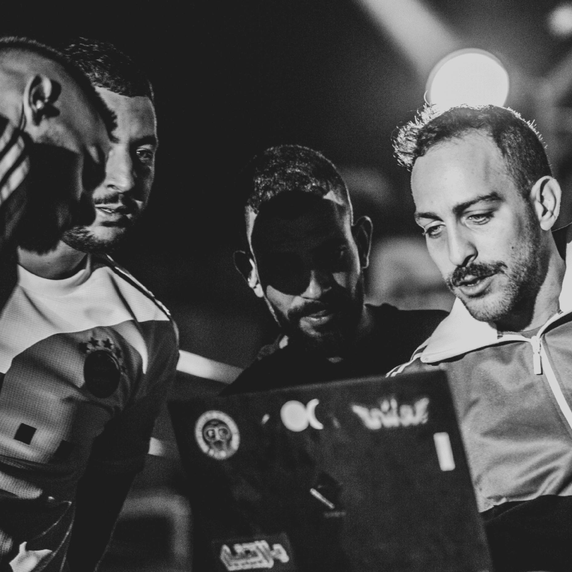 At the helm of this now six-member collective is Shabjdeed, a rapper whose Kufr Aqab upbringing informs his intricate and astute wordplay on Palestinian life, complemented by a sound of autotuned, emotional rawness. Shabjdeed’s restless energy is palpable in his lyricism, an ever-flowing stream of words that fills every corner of his tracks, punctuated by infectious choruses that are impossible to forget. His unfiltered, unapologetic style and daring personal delivery immediately captured the attention of the underground Palestinian hip-hop scene, propelling him into the spotlight and drawing the gaze of industry veteran, Al Nather.