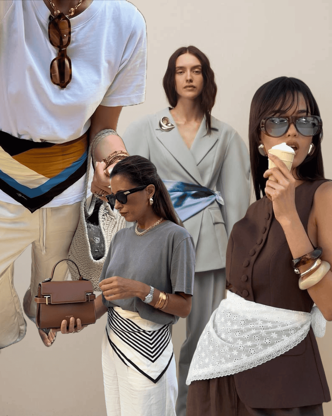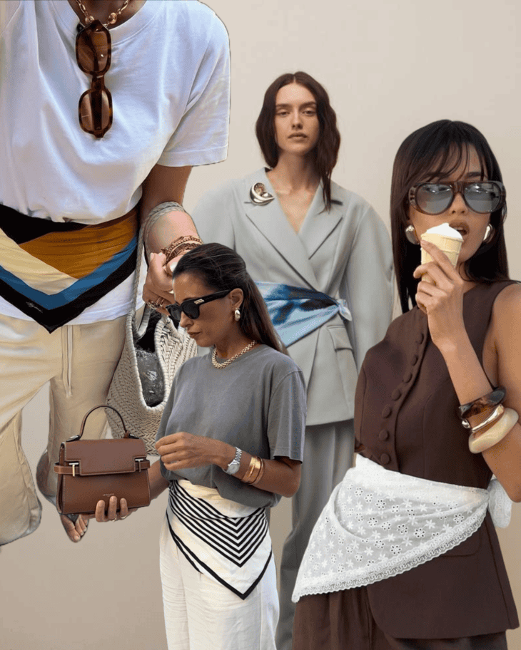 This summer, the scarf is shedding its familiar roles and reinventing itself as a quiet force of transformation. No longer just a delicate touch around the neck or a playful hair tie, this summer it wraps itself around the waist, drawing focus not with noise, but with nuance. What started as a last-minute styling trick has turned into a full-on obsession.