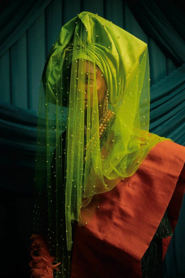 Nigerian artist Lakin Ogunbanwo (Instagram) masterfully fuses fashion photography with classical portraiture, creating enigmatic, subversive images that intrigue with their bold, seductive energy. His subjects, often draped in shadow, fabric, or foliage, evoke a refined homage to the iconic African studio photography of the 1960s and 70s, brought to life through vibrant colours and striking minimalist compositions. At the heart of Ogunbanwo’s art is a profound commitment to documenting the rich culture of Lagos, expanding the African visual archive, and presenting self-represented African narratives that challenge and subvert Western perceptions.