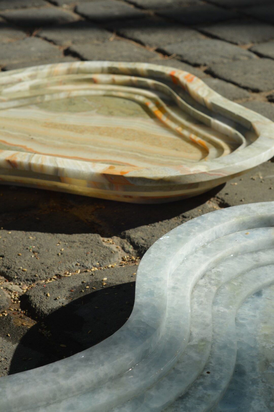 Her piece translated these themes through contemporary marble design, minimal yet emotive compositions that echo the site’s architectural rhythm. Polished surfaces met carved voids, allowing light and shadow to mimic water’s movement across stone. The result was both tactile and spiritual, grounding ancient practices in modern material expression.