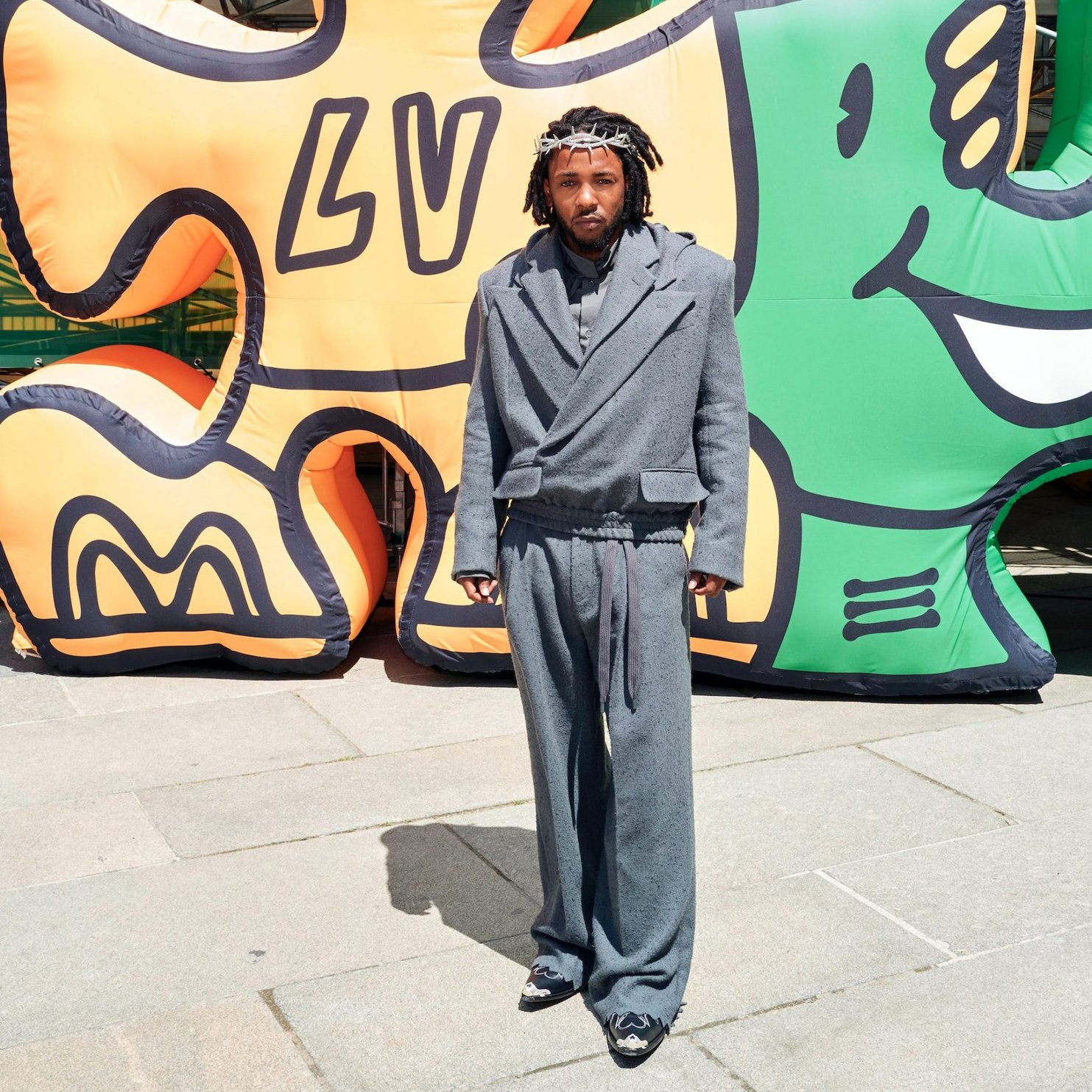 The collection featured a colour palette of white, beige, and black so loosely put together you could be forgiven for thinking it pyjamas. At Louis Vuitton’s SS/23 Menswear, Kendrick Lamar delivered his ode to late designer Virgil Abloh in a custom-made LV suit – light In colour and construction and featuring a roomy fit. Not only were the proportions big, but the unconventional blazer also featured a double lapel detail, a hood, and a ripped hem.