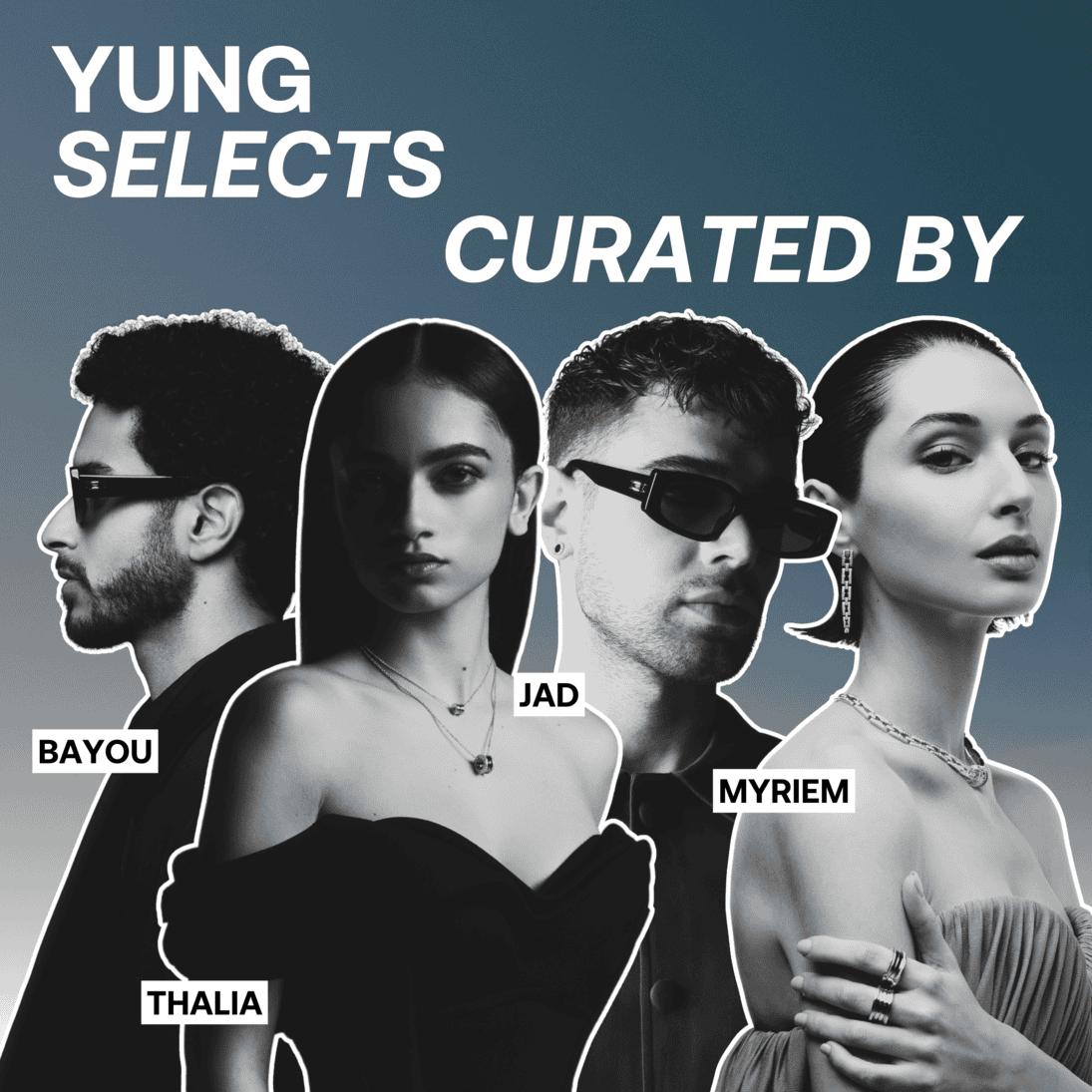 This special edition of YUNG Selects has something truly unique in store: exclusive playlists that offer a rare glimpse into the musical inspirations of our latest cover stars. From Lebanon to Tunisia, these are some of the Arab world’s most exciting creative talents and they’re opening up their sonic worlds, revealing the sounds that inspire and move them.