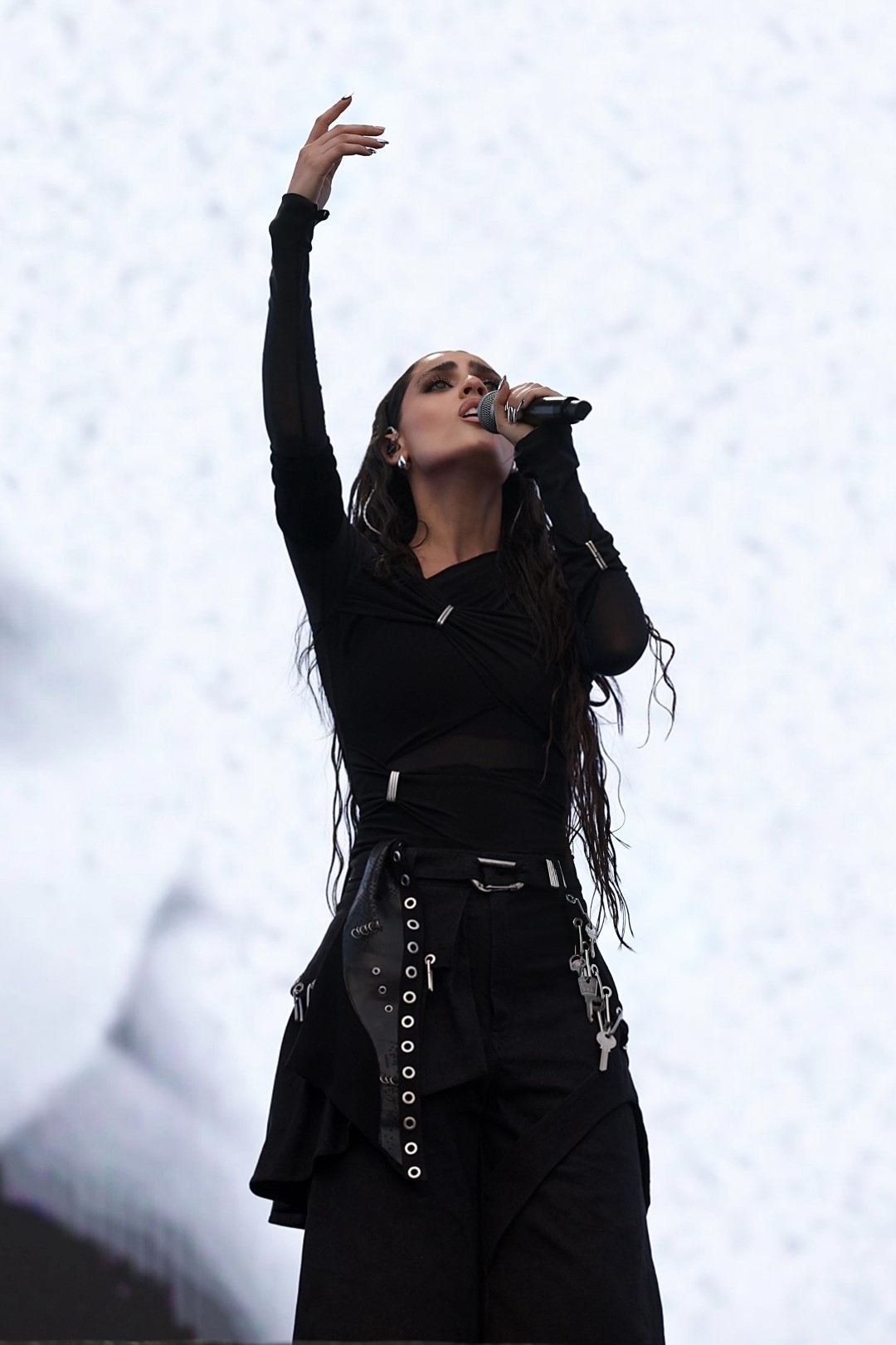 The entire vibe? Next-level. Designed by Farah Hourani and Saif Hidayah, Zeyne’s look wasn’t just fashion—it was armor. Her dancers matched the energy with custom pieces of their own, creating a unified, fresh aesthetic that elevated the entire set.